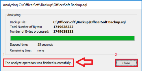 Caso tudo tenha ocorrido conforme o indicado, clique em Close (2) para finalizar a operação. PRONTO! A REALIZAÇÃO DO BACKUP E A ANÁLISE DA SUA HIGIDEZ FORAM REALIZADOS COM SUCESSO!