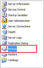 1.3. Acessar o item Backup no menu lateral esquerdo, conforme destaque em vermelho na imagem apresentada abaixo.